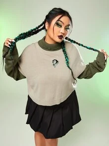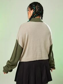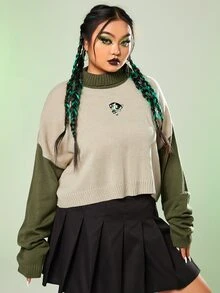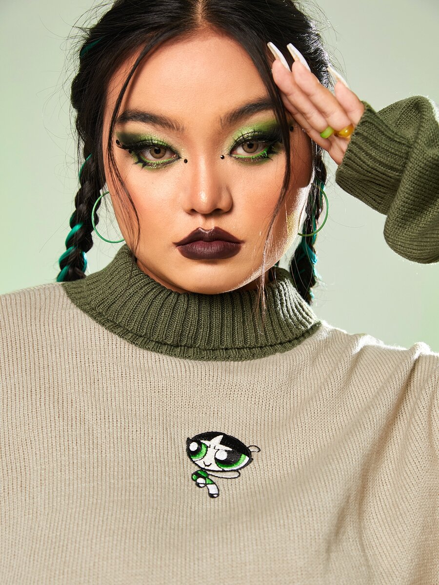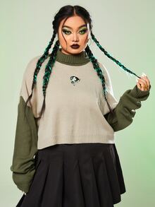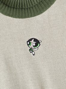 The Powerpuff Girls | ROMWE Pullover mit Farbblock, Cartoon Stickerei, hochgeschlossenem Ausschnitt, Drop Shoulder