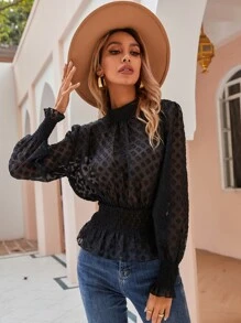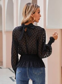 Bluse mit Band hinten, geraffter Taille und Falten