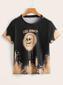 T-Shirt mit Batik & Buchstabe Schädel Muster
