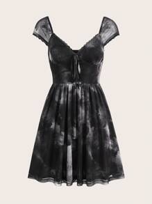 Kleid mit Batik, Sweetheart Ausschnitt, Spitzenbesatz,