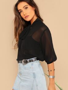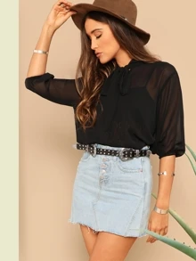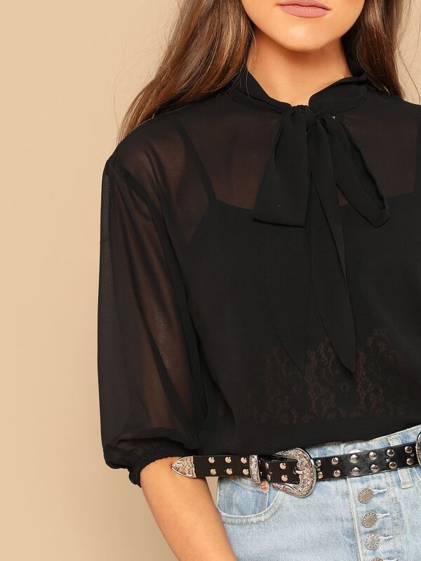 SHEIN Transparente Bluse mit Halsband, Laternenärmeln ohne BH