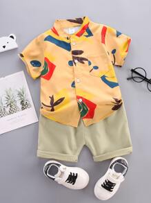 Shirt mit abstraktem Muster, Knöpfen vorne und Shorts