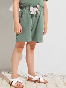 Shorts mit Schleife vorne und Papiertasche-Taille