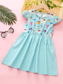 Babydoll-Kleid mit Cartoon Grafik und Rüschen