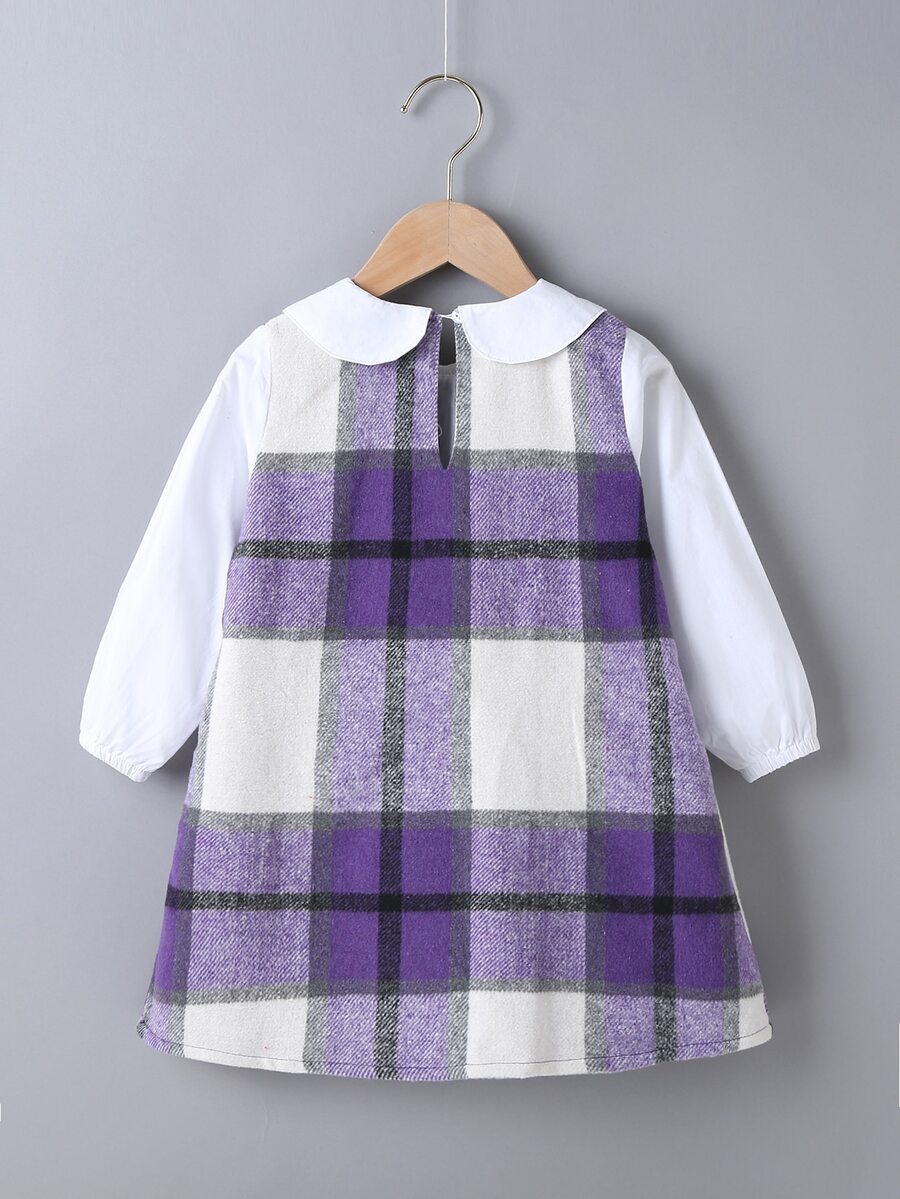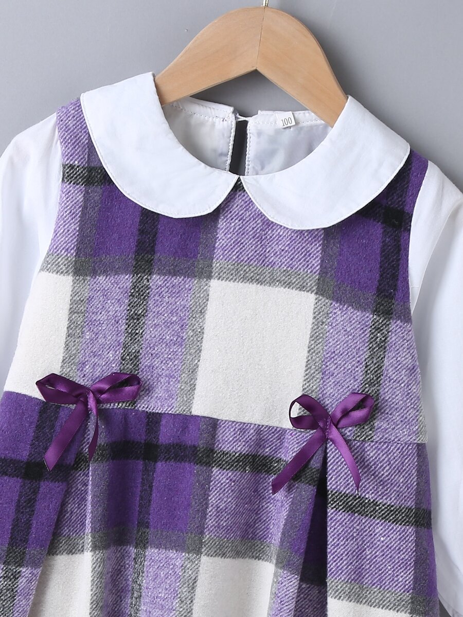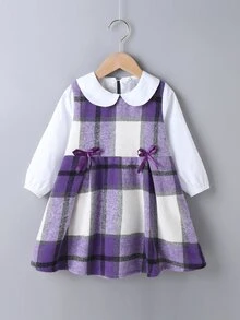 Kleid mit Kontrast Kragen, Karo Muster und Schleife Detail