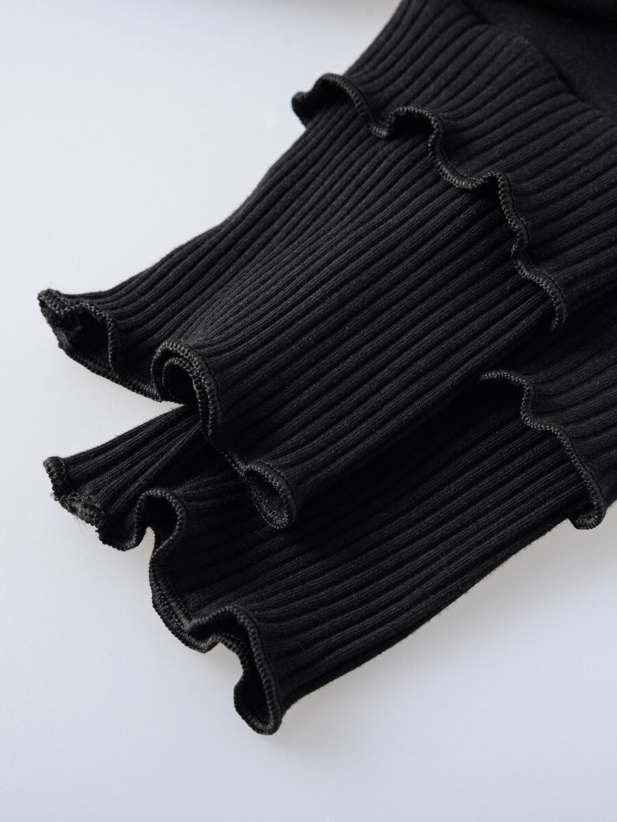 Rippenstrick Leggings mit gewelltem Saum