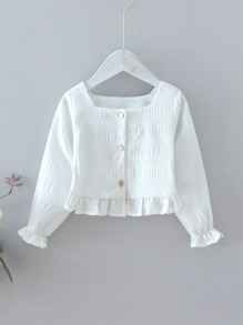 Einfarbige Bluse mit Rüschenbesatz und Knöpfen