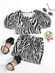 Top mit Zebra Streifen, Mesh-Einsatz & Rock