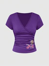 ROMWE Avant Damen T-Shirt mit engem Sitz, Sommer Floral- und Buchstabe Muster