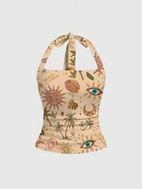 Sexy Hippie Urlaubs Retro Muster Neckholder Schleife ärmellose Bluse für Frauen