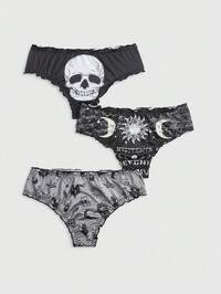 IamYouth Goth 3 Packe Höschen Set mit Schädel Muster, Kontrast Spitzen,