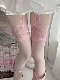 Fairycore 1 Paar sexy einfarbige Spitzensocken, retro rosa Strumpfhose mit Strumpfhaltern, sexy ultra-dünne elastische Strumpfhose