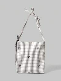 Kawaii Mode Kontrast Karomuster Schleife Schräge Schulter Stofftasche Collegetasche für Frauen