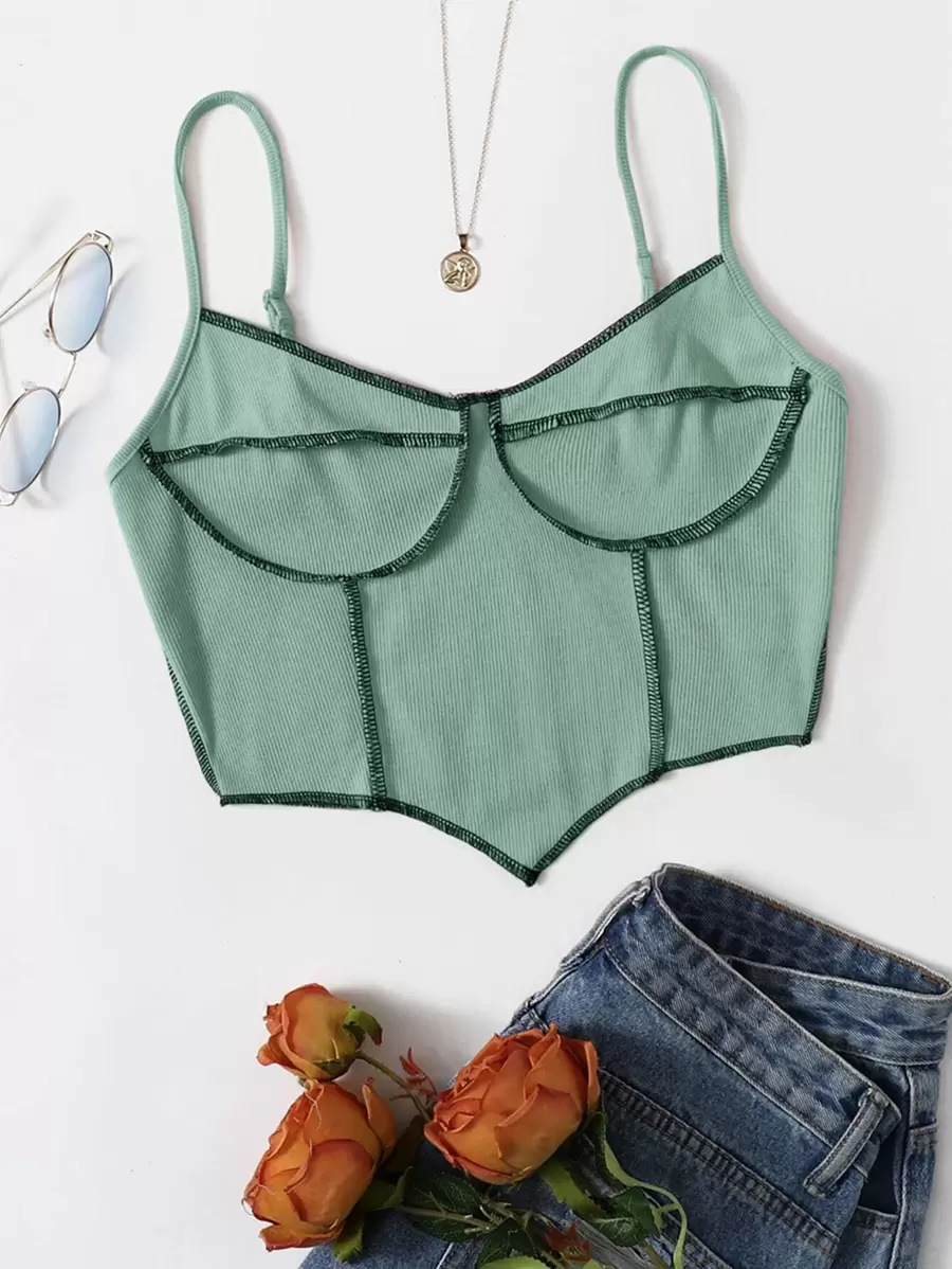 Cami Top mit Kontrast Stich und asymmetrischem Saum