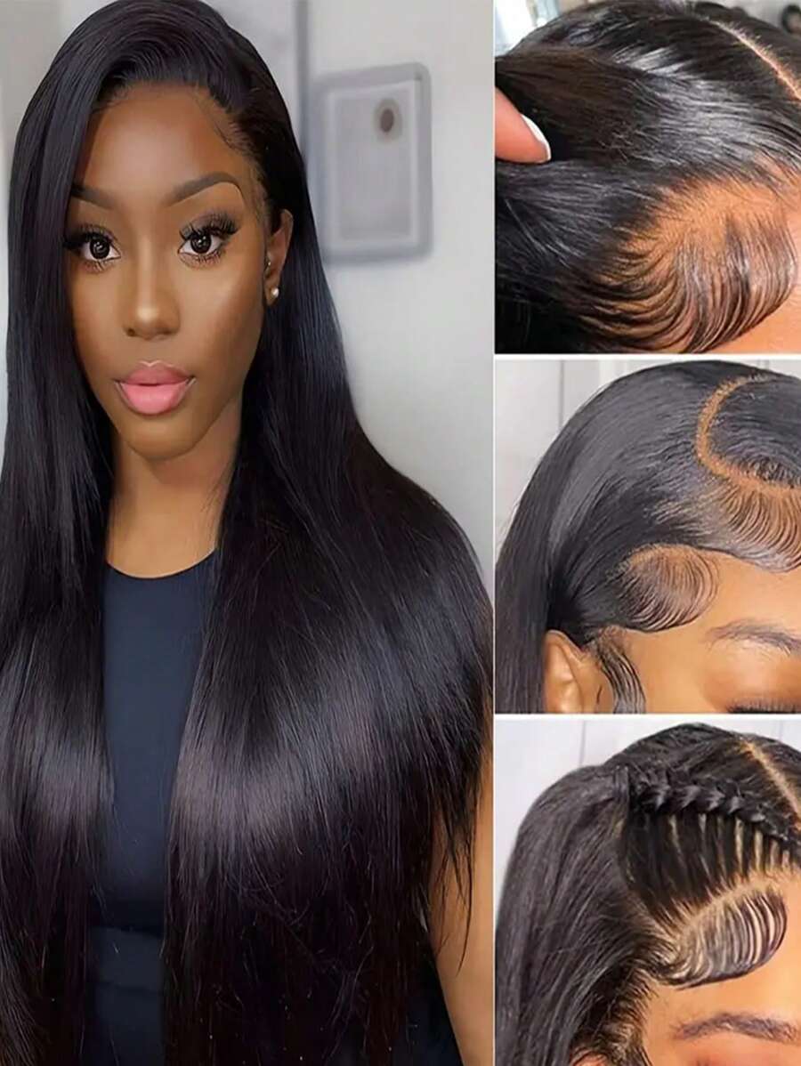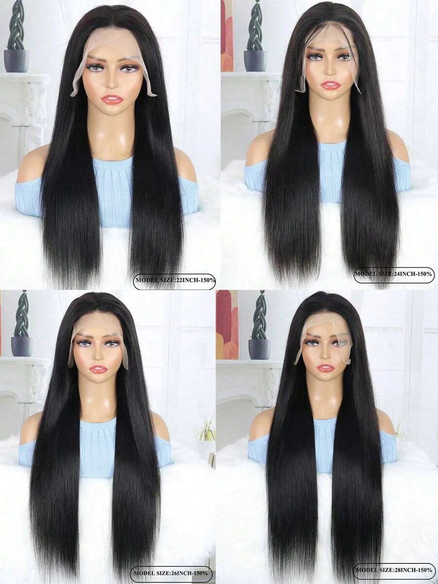 Transparente Spitze vorne, Gerade 13*4 Spitzenfront Perücken Mit Babyhaar Vorgezupft Unverarbeitete Echthaarperücken natürlich Schwarz Billig Mensch Haar Für Frauen