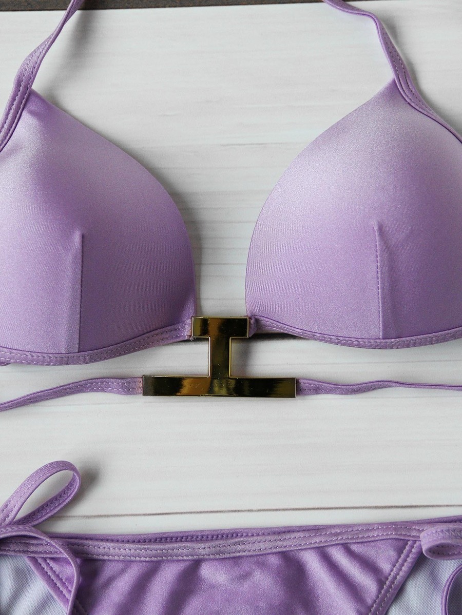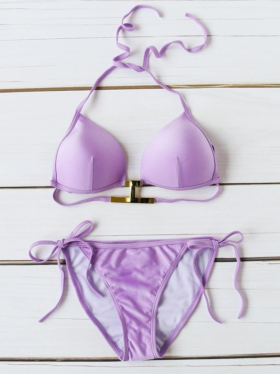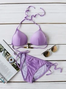 Lila Seiten-Krawatte Dreieck-Bikini-Set