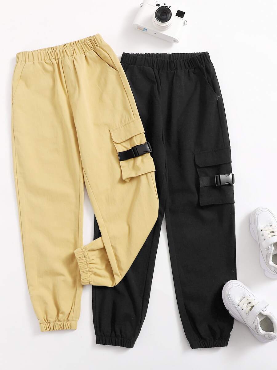 Tween Jungen 2 Pack Hosen mit Druckschnallenriemen und seitlichen Taschen