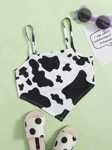 Cami Top mit asymmetrischem Besatz und Kuh Muster