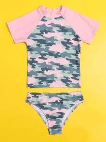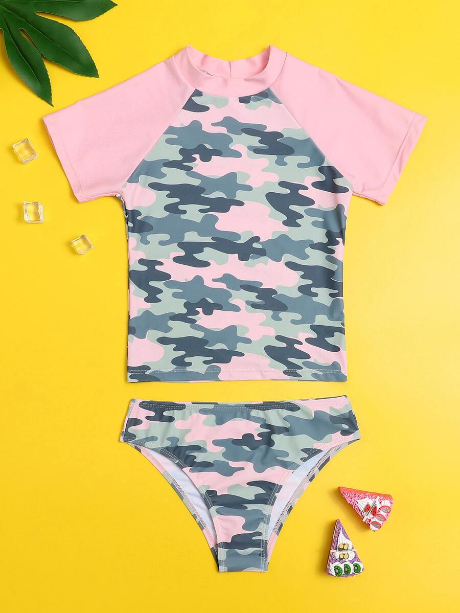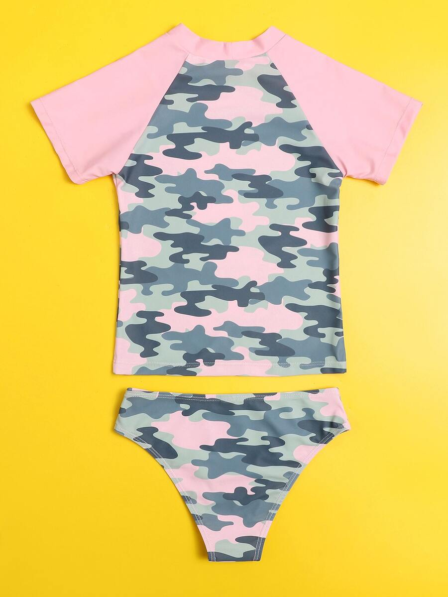 Tween Mädchen Einteiler Bademode mit Camouflage-Grafik