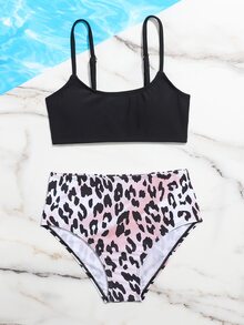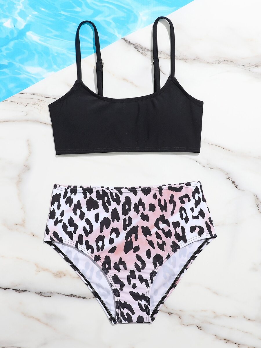 Tween-Mädchen Leoparden Muster Bikini-Set mit hoher Taille für Sommer und Strand