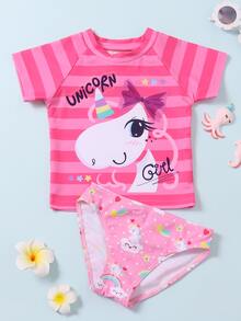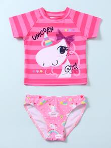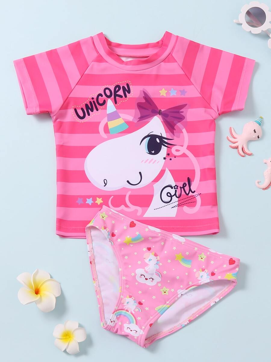 Tween Mädchen Einhorn & Gestreifter Tankini Sommerstrand