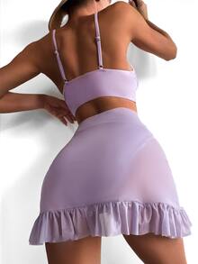 Sommer Strand Bikini-Set mit verdrehter Vorderseite und Strandrock