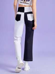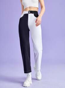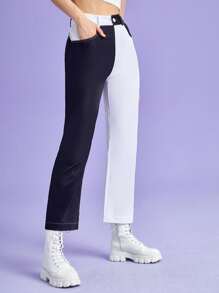 Zweifarbige Hose mit Knöpfen