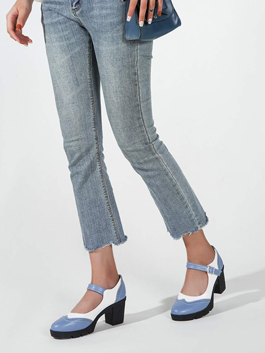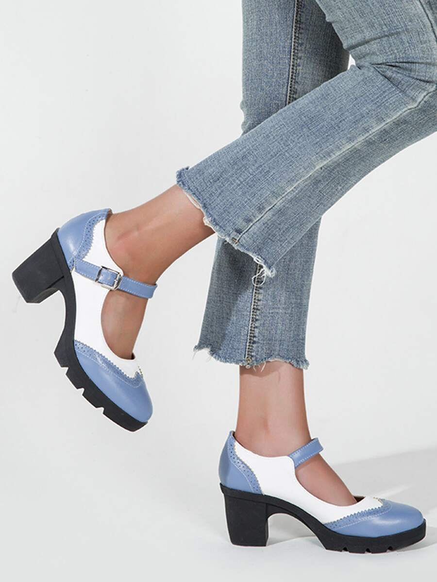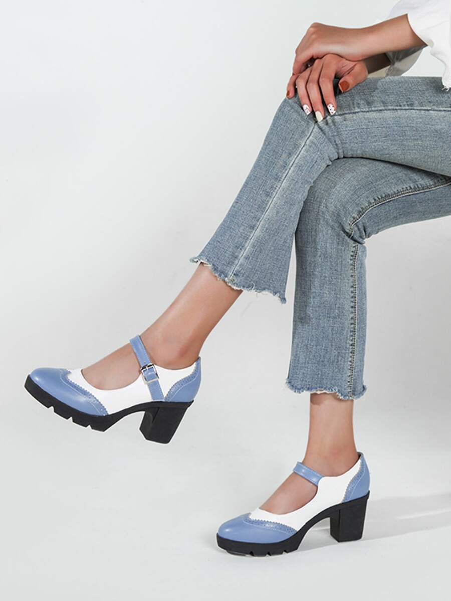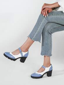 Zweifarbige Mary Jane Pumps mit klobiger Sohle