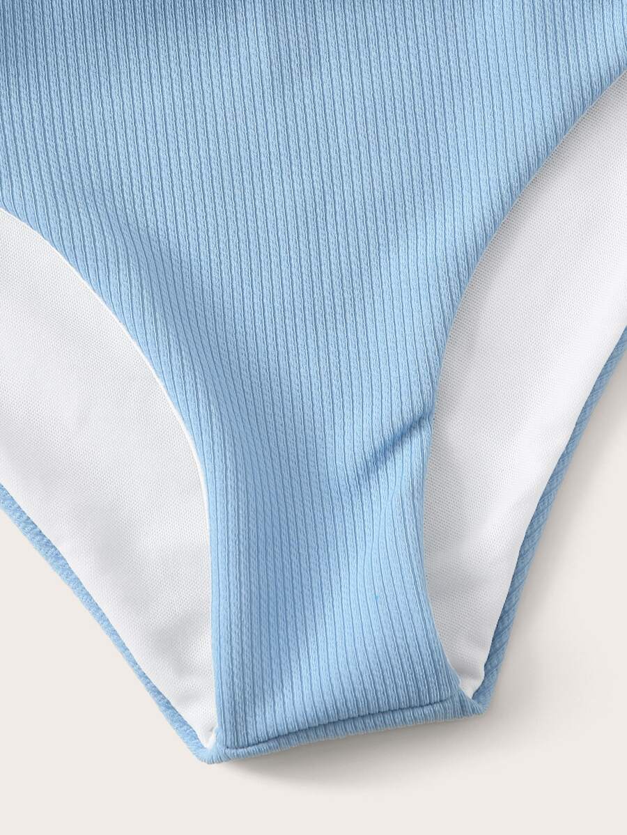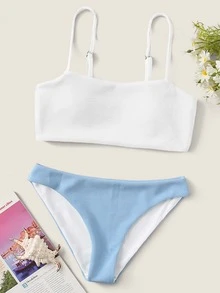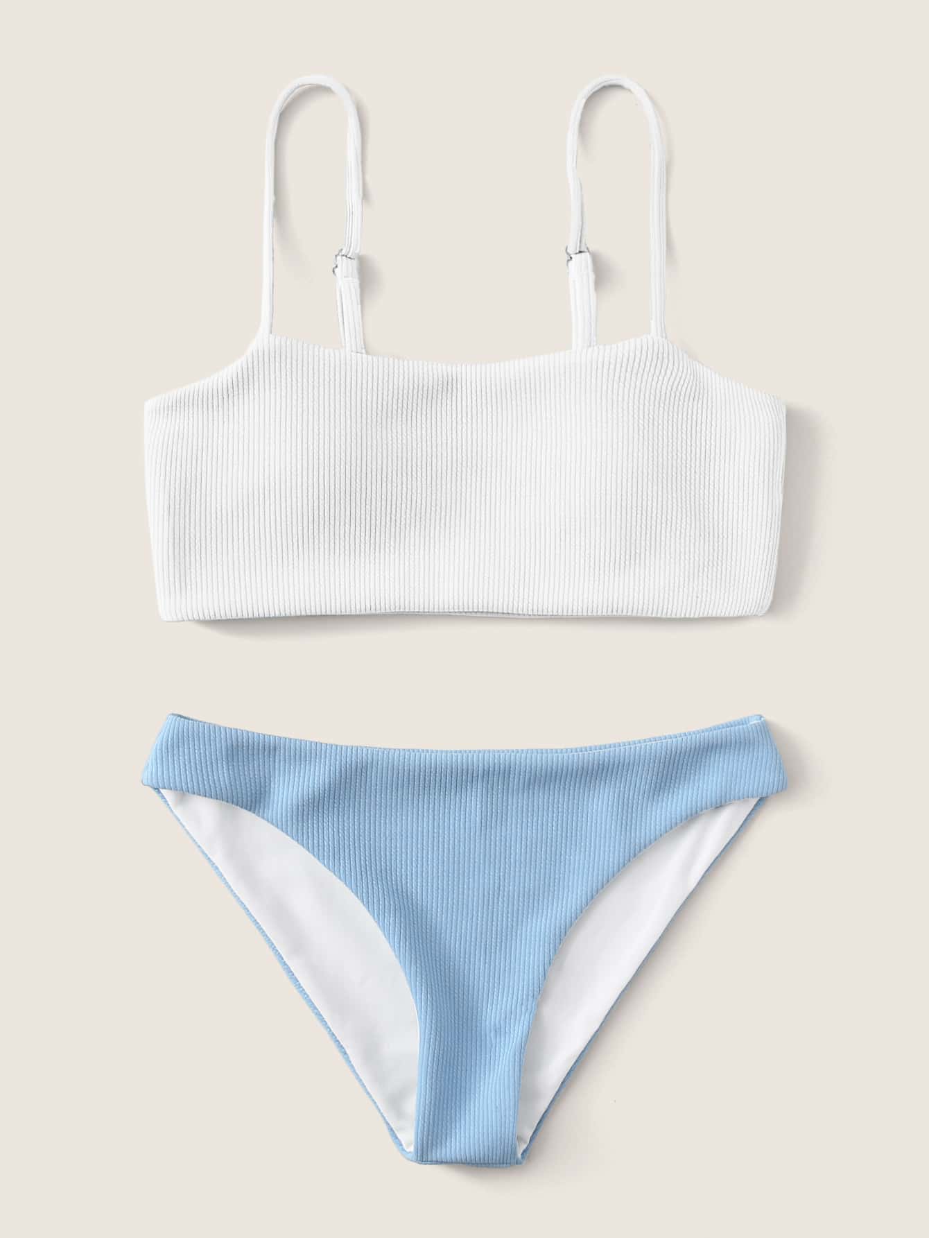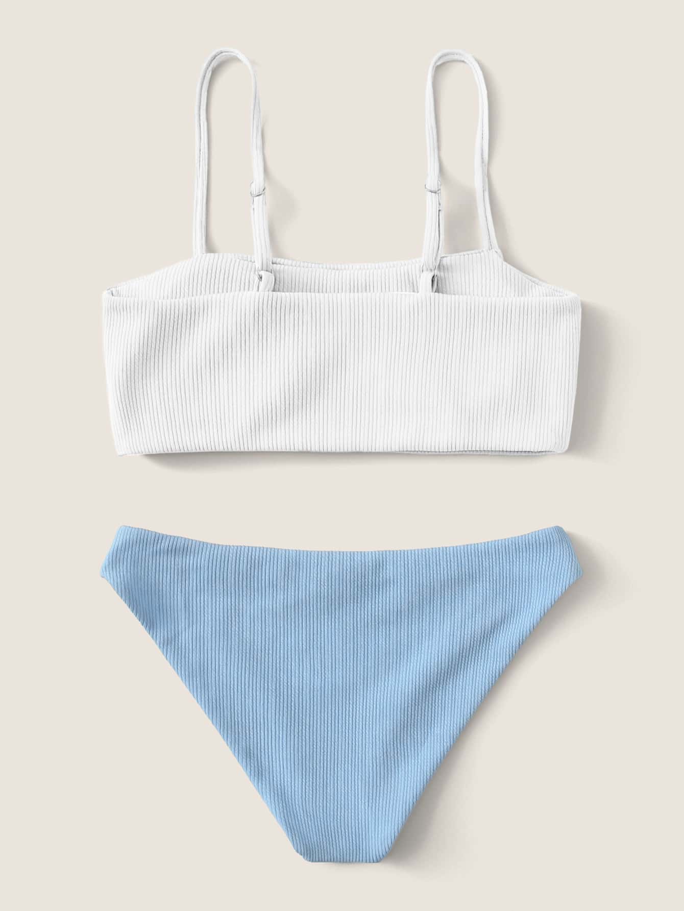 Bikini-Set mit Cami-Top und geripptem Design in Zwei-Farben für den Sommer am Strand
