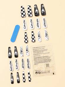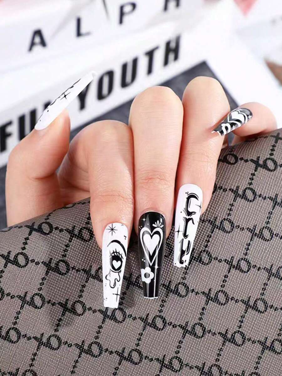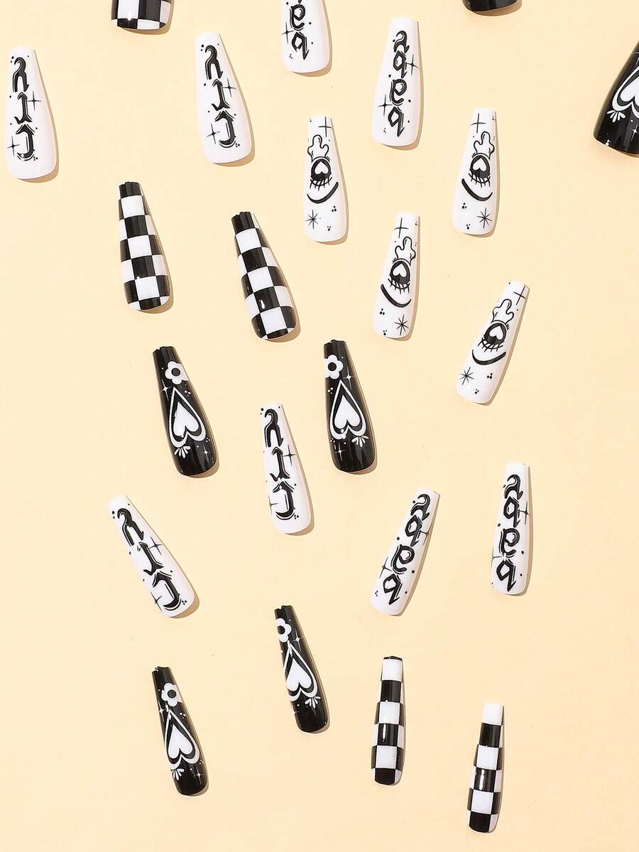 Werten Sie Ihren Look mit dem 24 teiligen Fake Nail Kit mit langem Sarg Buchstaben Grafik Gothic Muster und vollständiger Abdeckung auf