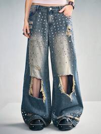 Grunge Punk Frauen Weite Denim mit zerrissenen Reißverschluss-Applikationen, lässig und vielseitig einsetzbar, geeignet für verschiedene Anlässe