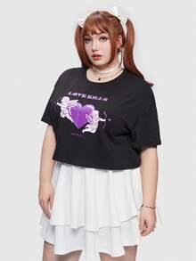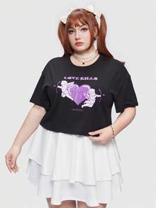 VERTIGO222 Drop Shoulder T-Shirt mit Herz & Amor Grafik,