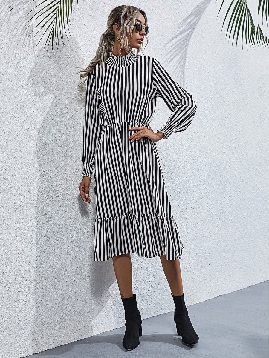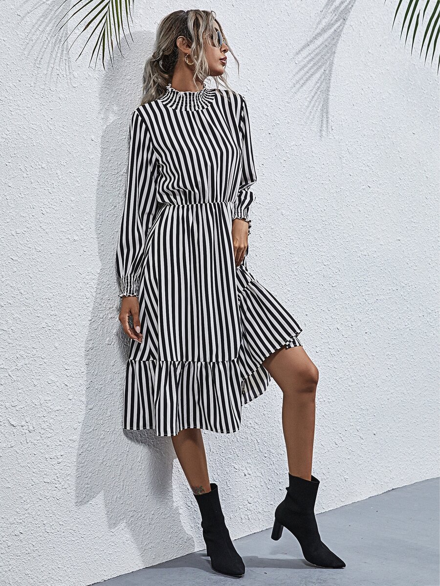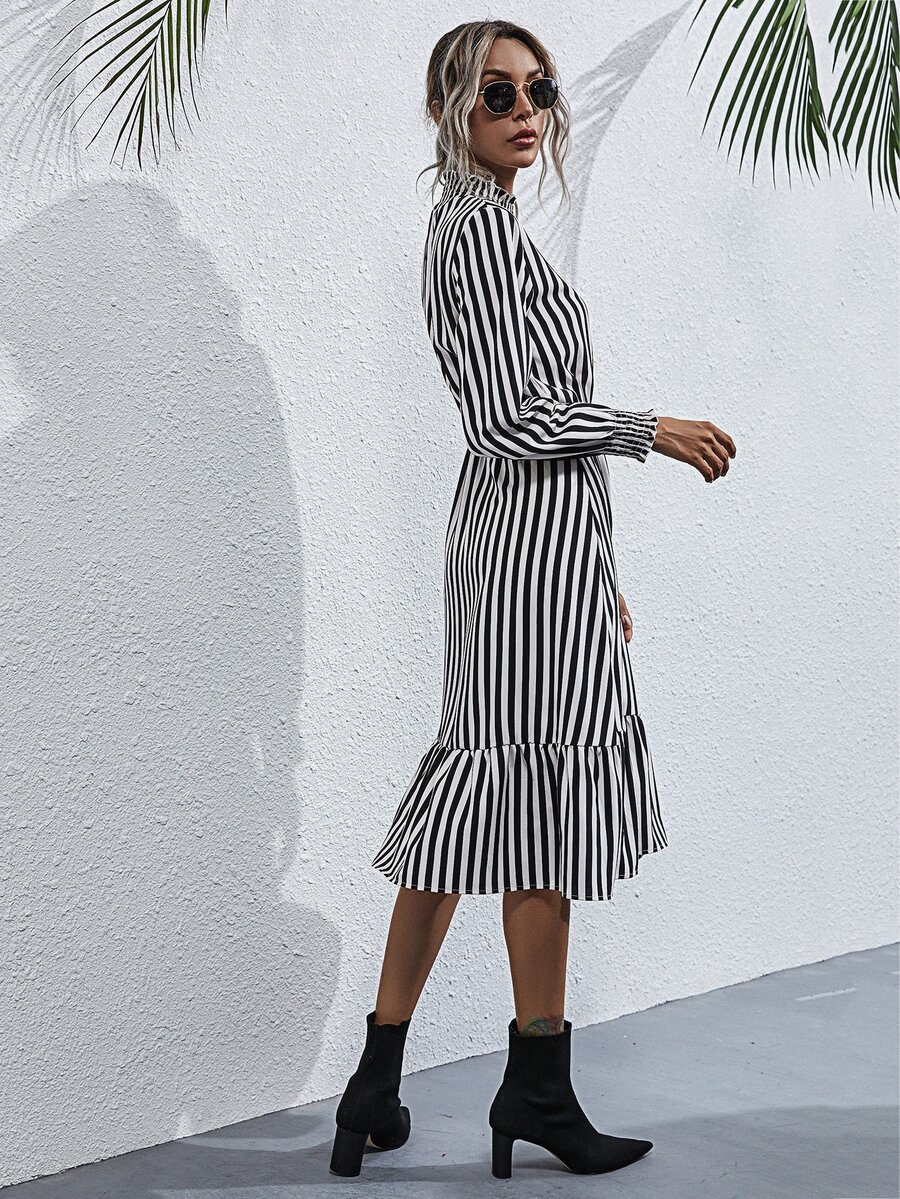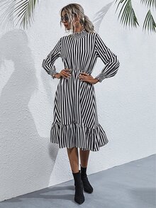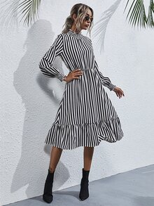 Kleid mit Streifen und Rüschen