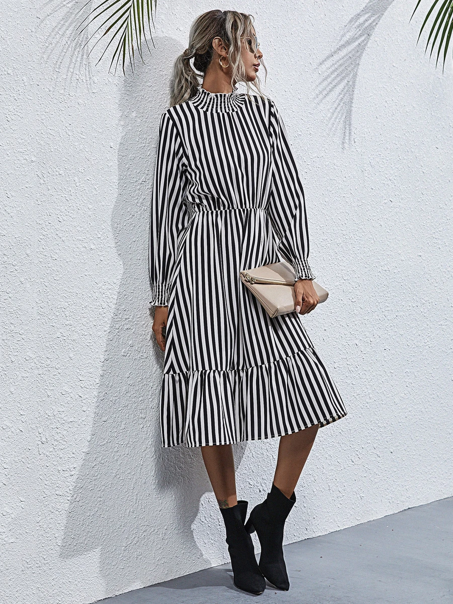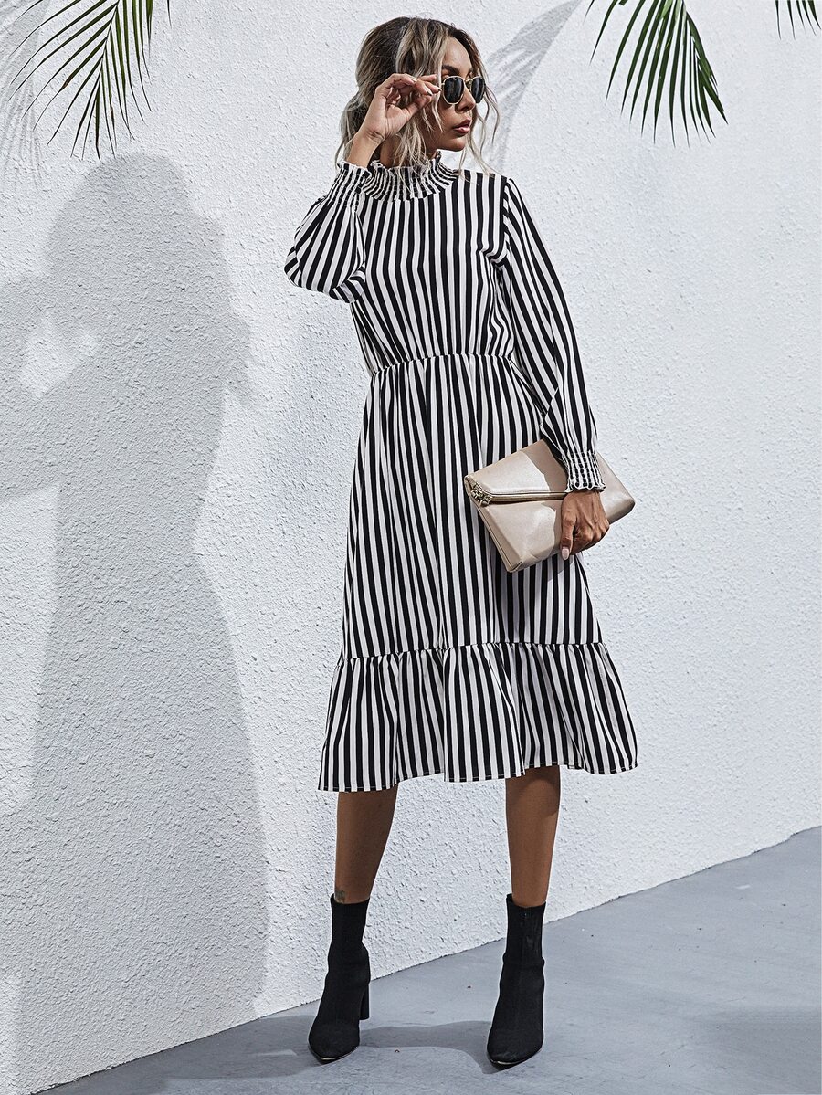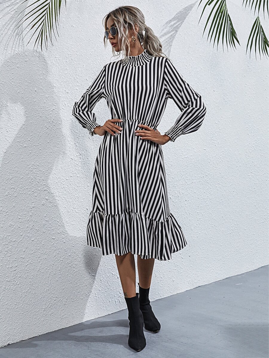 Kleid mit Streifen und Rüschen