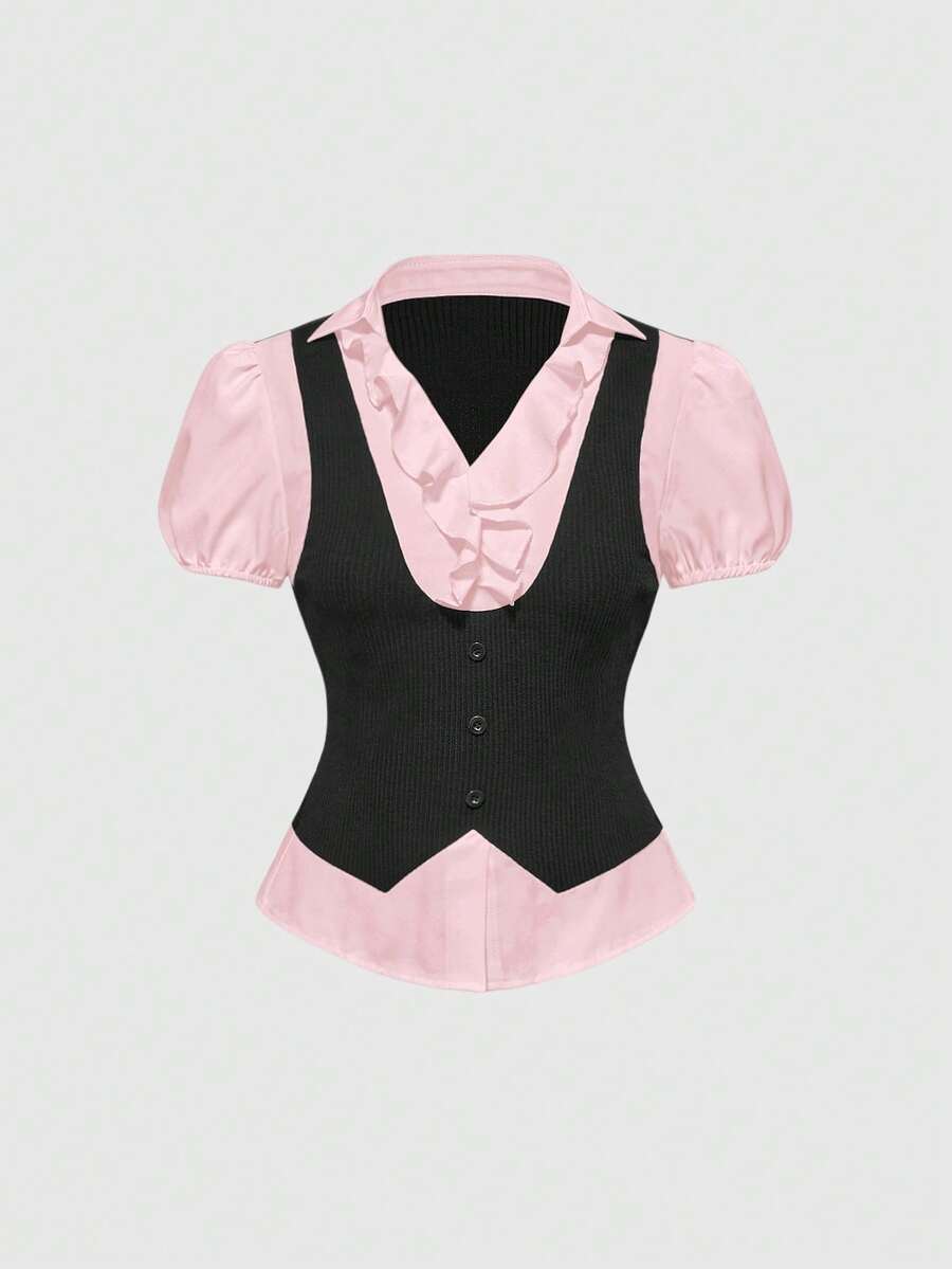 Vintage Gothic College Stil 2 in 1 Damen Top