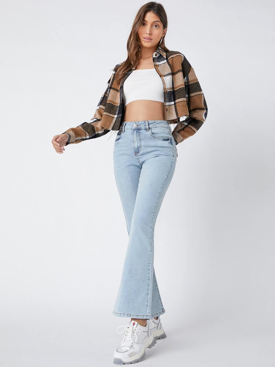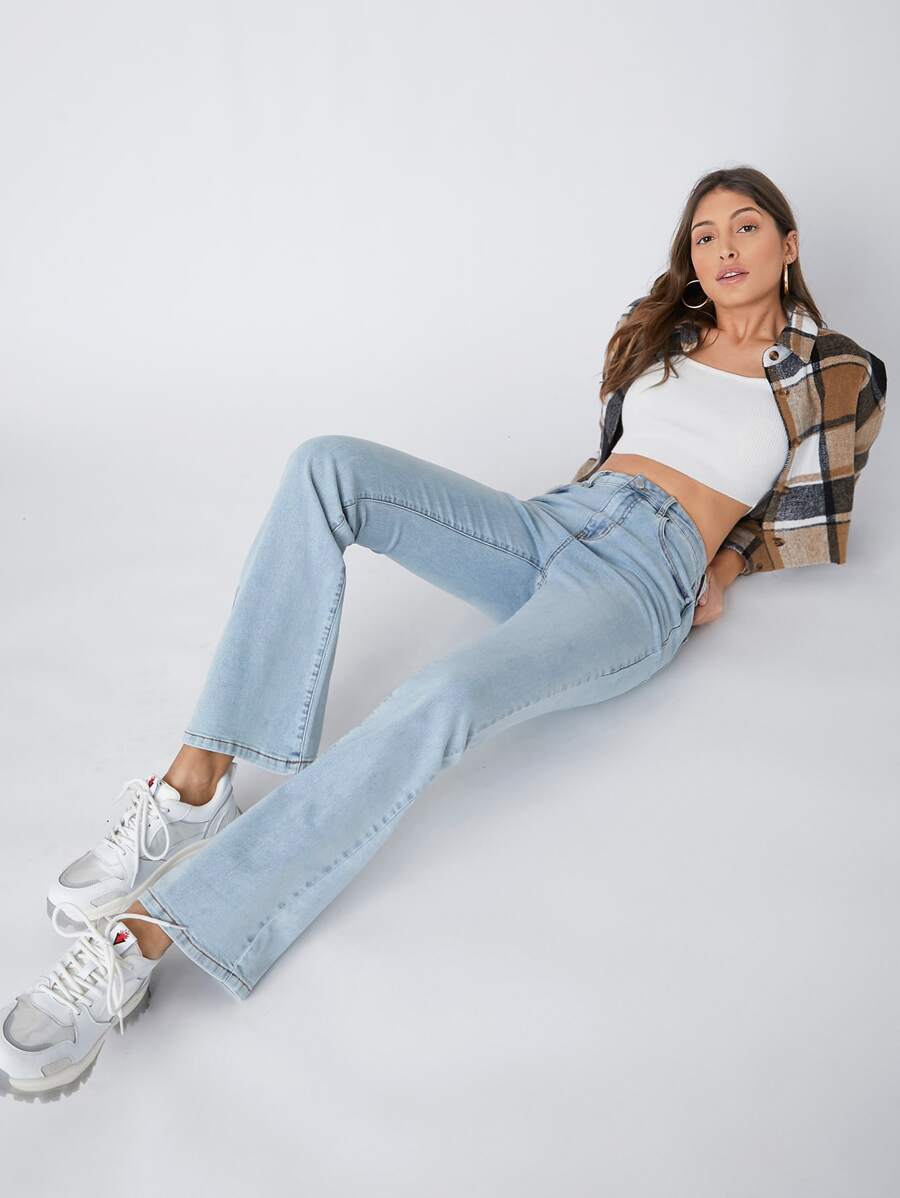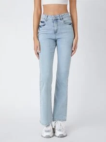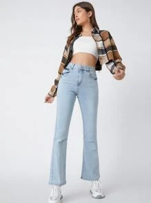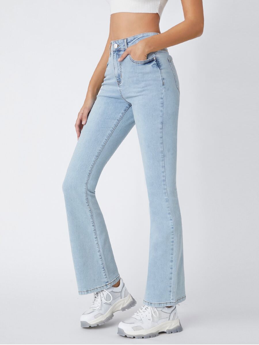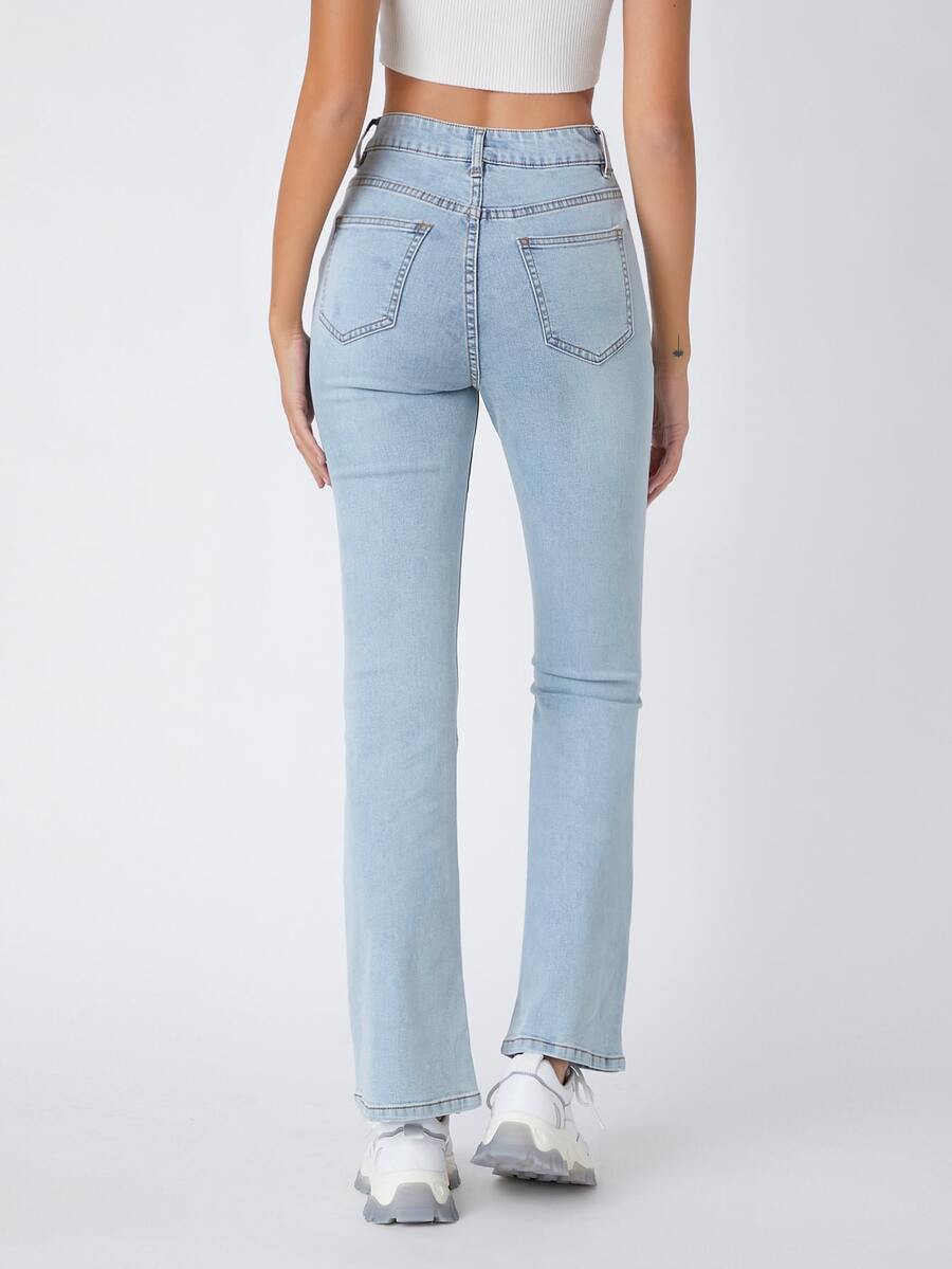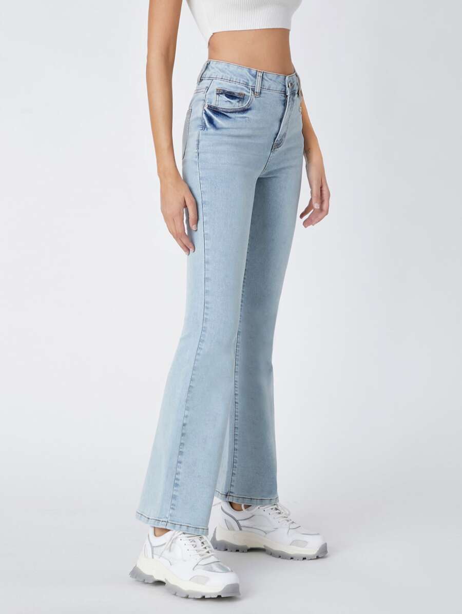 Jeans mit hoher Taille, schrägen Taschen und ausgestelltem Beinschnitt