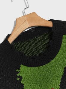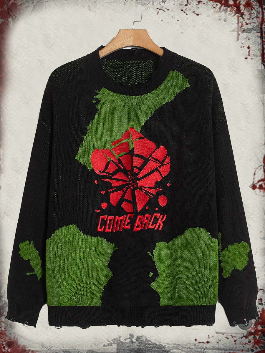 WB Horror | ROMWE Männer Pullover mit Buchstaben Stickerei, Farbblock