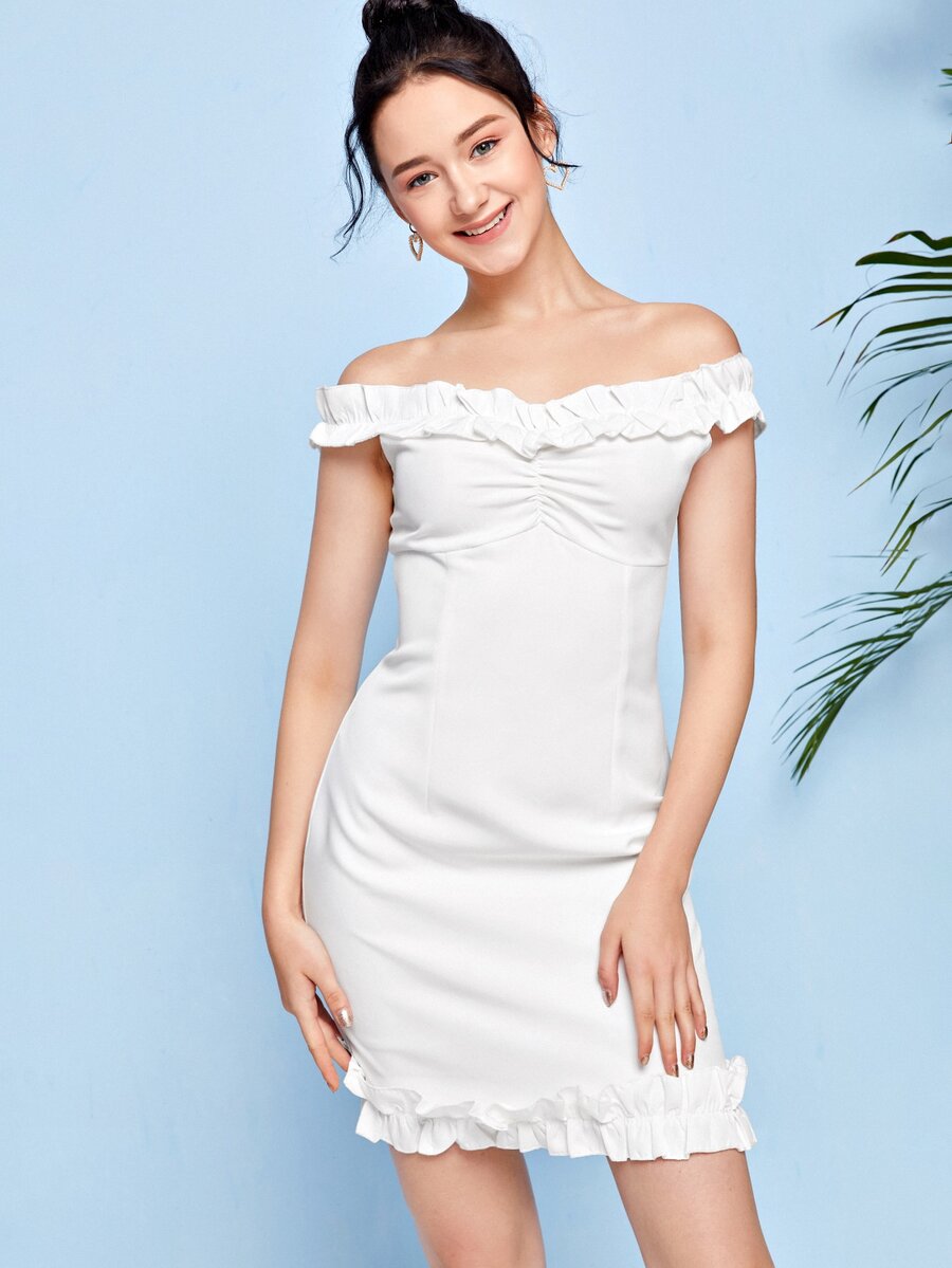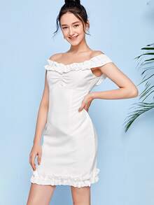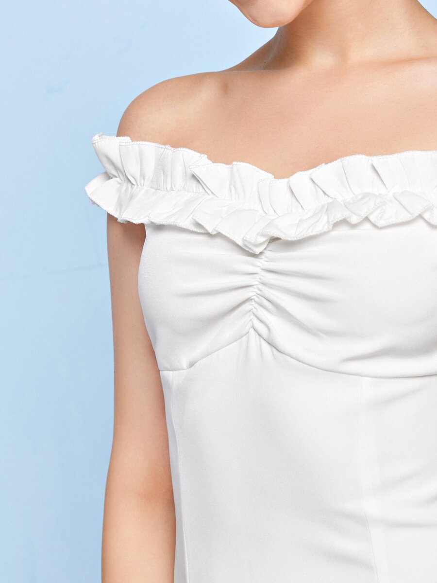 Weißes Kleid mit Rüschen