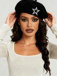Grunge Punk 1 Barett im einfachen Stil mit Diamant-Stern Element, Herbst- und Winter-Wildleder-Barett, tägliches personalisiertes Modeaccessoire