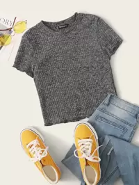 Rippenstrick T-Shirt mit gekräuseltem Saum