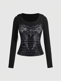 Goth Y2K Schlangen-Muster Taille Raffung Slim Fit Frauen 2 in 1 Top