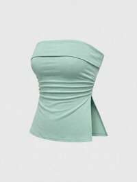 Y2K-Kreuz mit Strass-Verzierung, schwarzes trägerloses Crop-Top mit Kordelzug und Schlitzabschluss für Frauen