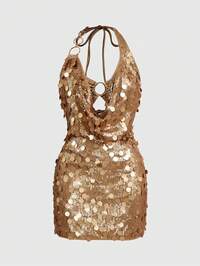 ROMWE Avant Sexy Y2K Party Pailletten Trägerkleid mit tiefem Ausschnitt und taillierter Taille für Frauen