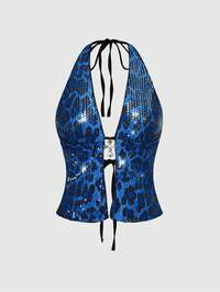 Frühlings-/Sommer-Pailletten matte Pailletten Neckholder rückenfrei Camisole Top für Frauen, romantische Party
