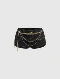 ROMWE Avant Damen Retro Gyaru Biker Stil Ultra Taillierte Dekorative Mini Skinny Jeans Shorts