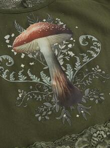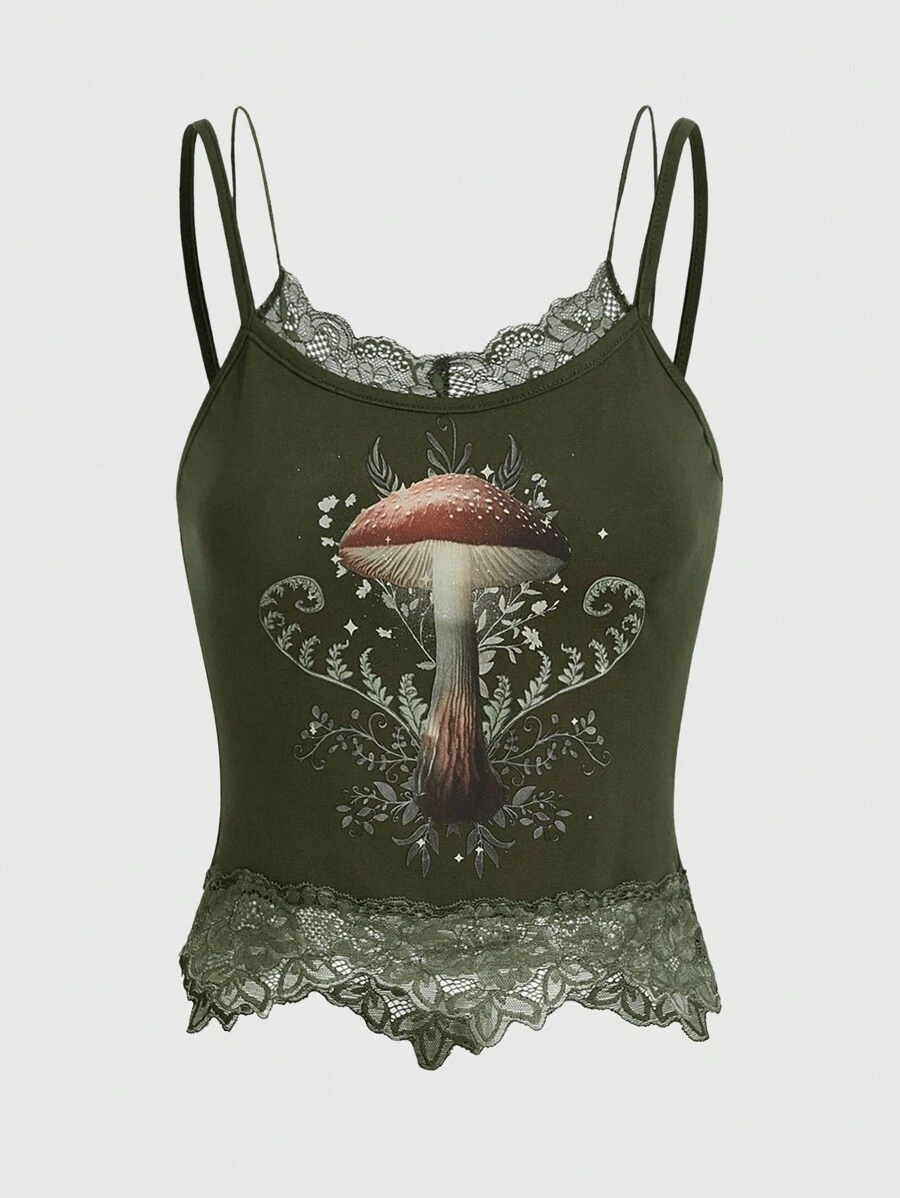 Fairycore Patchwork-spitzen-unterhemd Mit Pilzmuster Für Damen