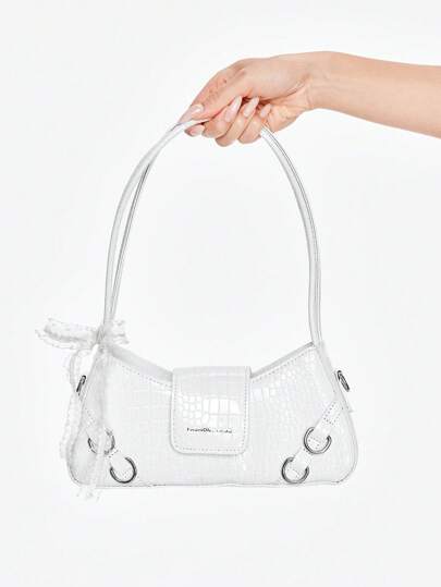 Fairycore Modische Nieten-Dekor Schulter-Handtasche aus PU-Leder, stilvolle Tasche für den Arbeitsweg