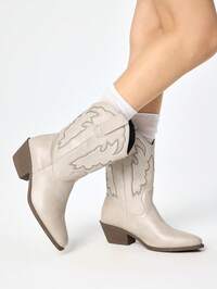 Fairycore Damen Cowboy Stiefel mit Schlüpf-Design, Kontrastfarbdetails, bestickte Western-Stil Stiefel, Mode Outdoor Lässig Halbe Wade Reitstiefel
