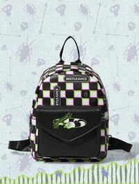 Beetlejuice | ROMWE | ROMWE Dunkel Punk Schachbrett- und Buchstaben-Stil Pendler Rucksack