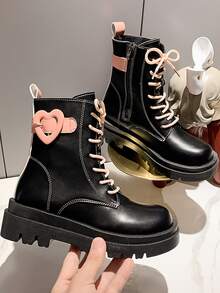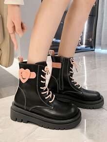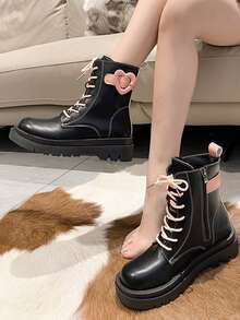 seitlicher Reißverschluss Schnürung Schnalle Farbblock Preppy Damen Modestiefel